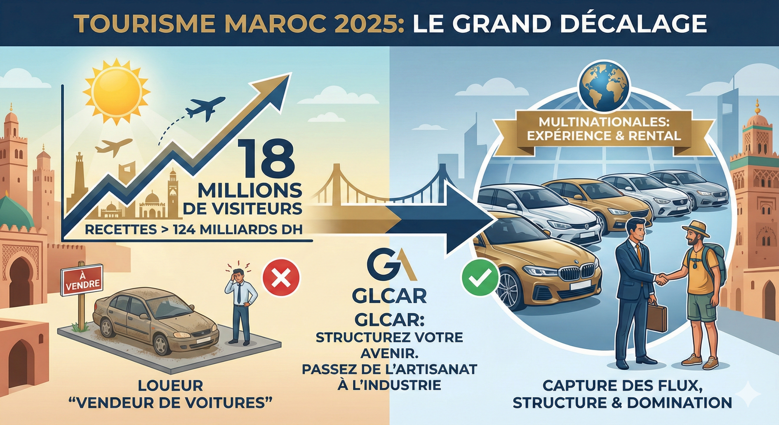 #GLCAR #LocationVoitureMaroc #Tourisme2025 #BusinessIntelligence #GIE #Maroc2030 #Mobilité